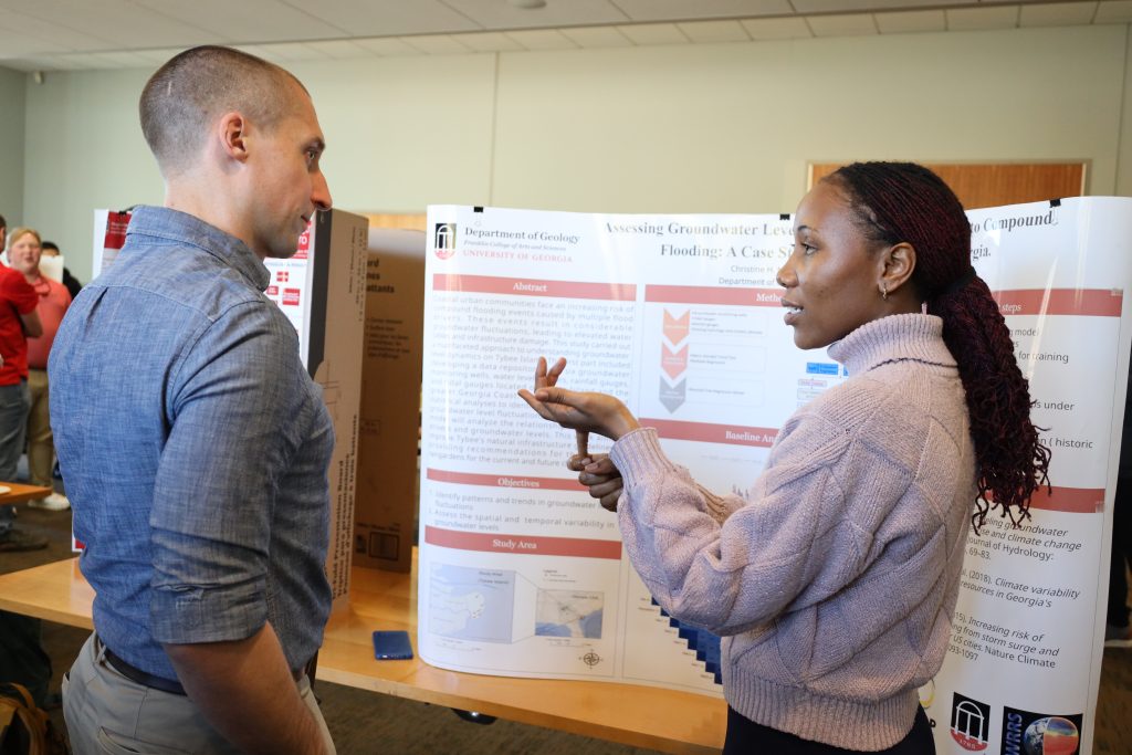 Graduate students across disciplines—including the College of Engineering, Odum School of Ecology, Warnell School of Forestry & Natural Resources, College of Agriculture & Environmental Sciences, Crop and Soil Sciences, Agricultural and Applied Economics, College of Environment and Design, Institute for Resilient Infrastructure Systems, Departments of Geology, Geography and Anthropology—presented.