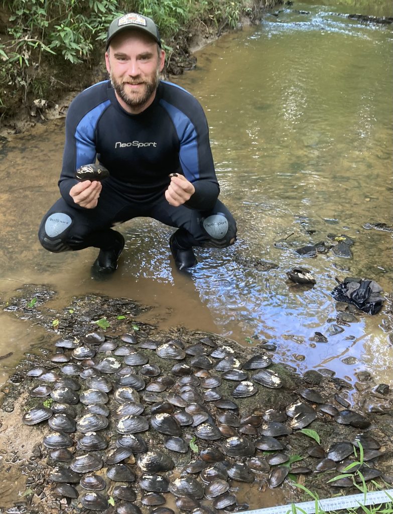 The research for his PhD focused on a state-listed species of freshwater mussel, called the Brook Floater (Alasmidonta varicosa) that lives along the East Coast of the US and Canada.